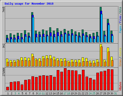 | Day | Hits | Files | Pages | Visits | Sites | KBytes | ||||||