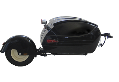 Its one wheel design lowers the center of gravity and lets the trailer follow the rider along the twists of the road.